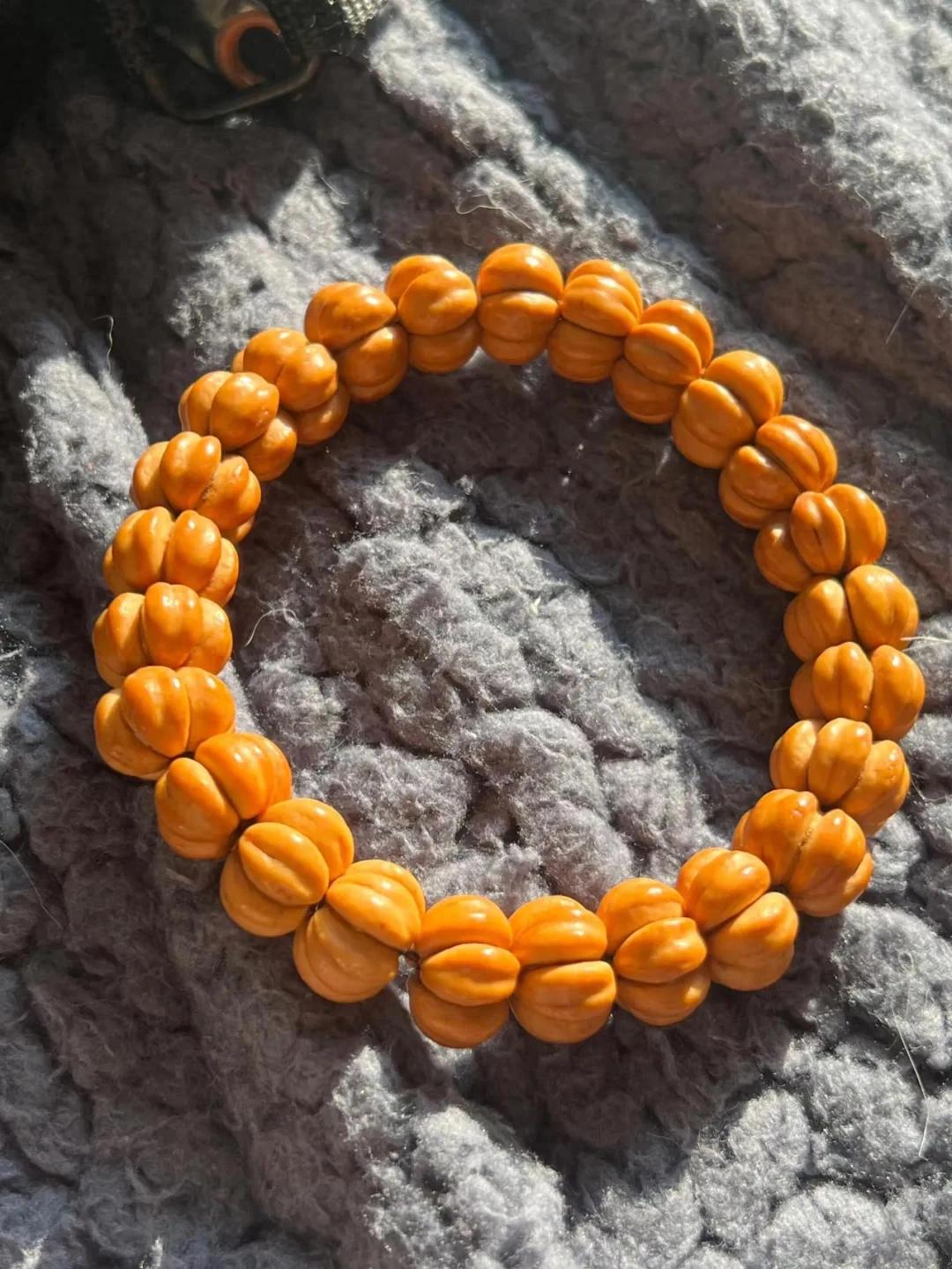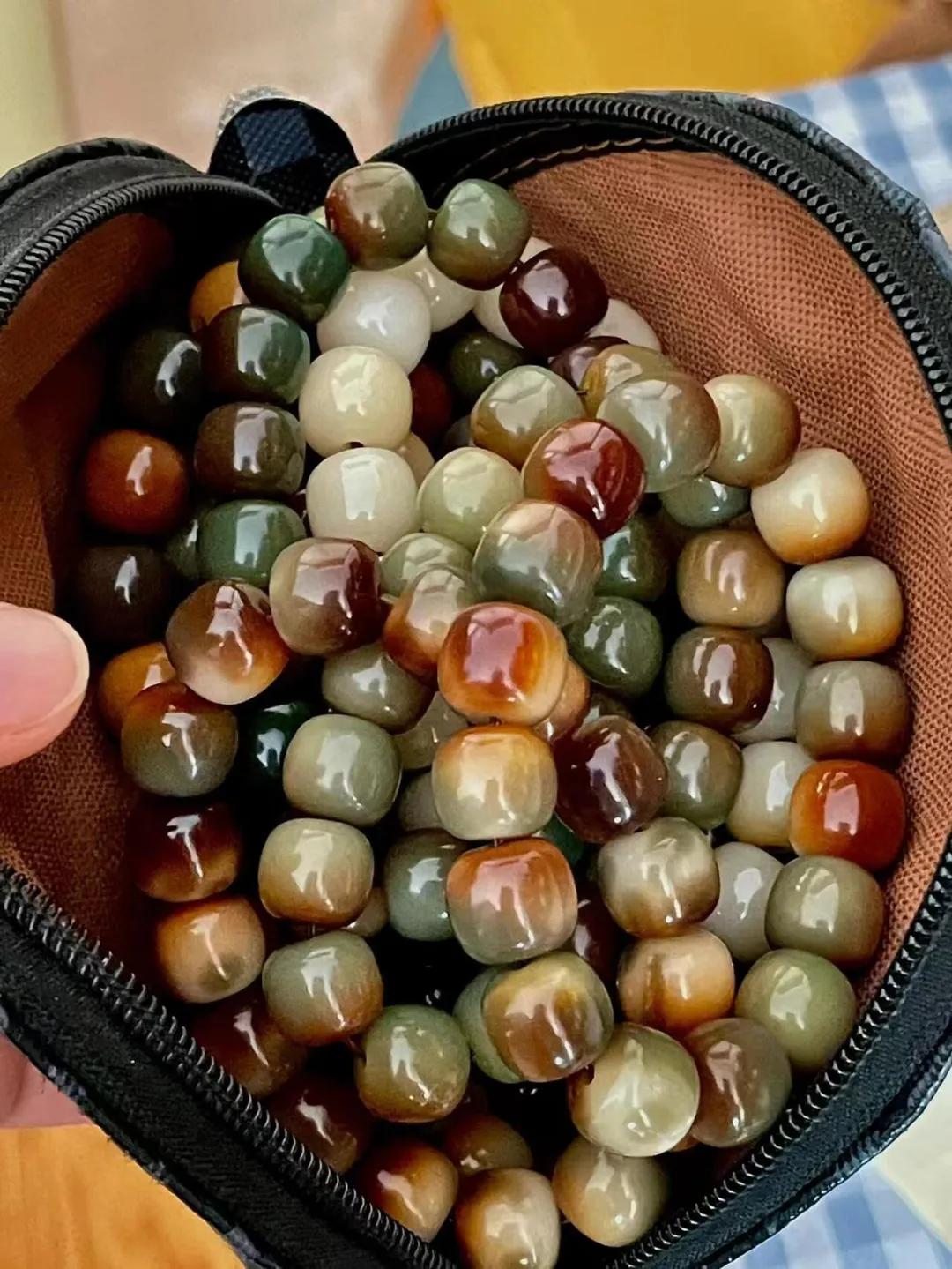 这个时候,找些没有完全成熟的山楂,去掉果肉,就能得到山楂核了,把它串成手串,盘玩一段时间后,也能包浆变色,甚至玉化,给你意想不到的惊喜!
