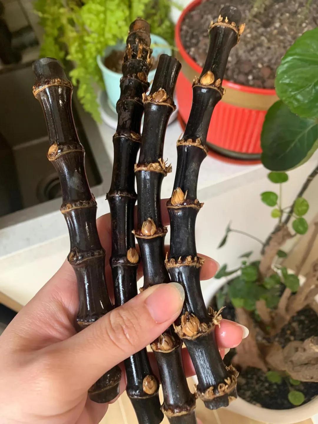 紫竹根还有一定的药用价值,《草木便方》记载:除风湿,通关节。治腰脚筋骨酸痛,风瘅。在中药店,一截紫竹根能卖到好几块钱呢!